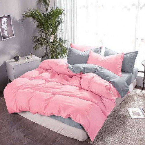 The pink and gray colors in the bedding set are an elegant and refined combination of colors that can create a gentle and stylish effect in your bedroom design.