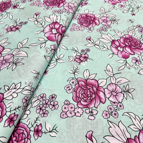Byaz Gold bed linen with pink roses on a white and turquoise background is made of high-quality cotton calico, which is soft, breathable and pleasant to the touch. The fabric has a smooth surface, which ensures a comfortable sleep and allows the skin to breathe. The bedding design consists of beautiful pink roses on a white and turquoise background. This design gives the bed linen tenderness and romance, which creates a cozy atmosphere in the bedroom. This bedding set is perfect for those who appreciate a comfortable sleep and coziness in the bedroom, as well as for those who love beautiful and stylish design in their home.